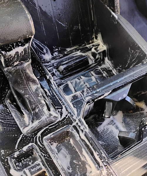 We vacuum the entire interior and shampoo the carpets and floor mats to remove deep-seated dirt, stains, and odors, leaving everything clean and refreshed.